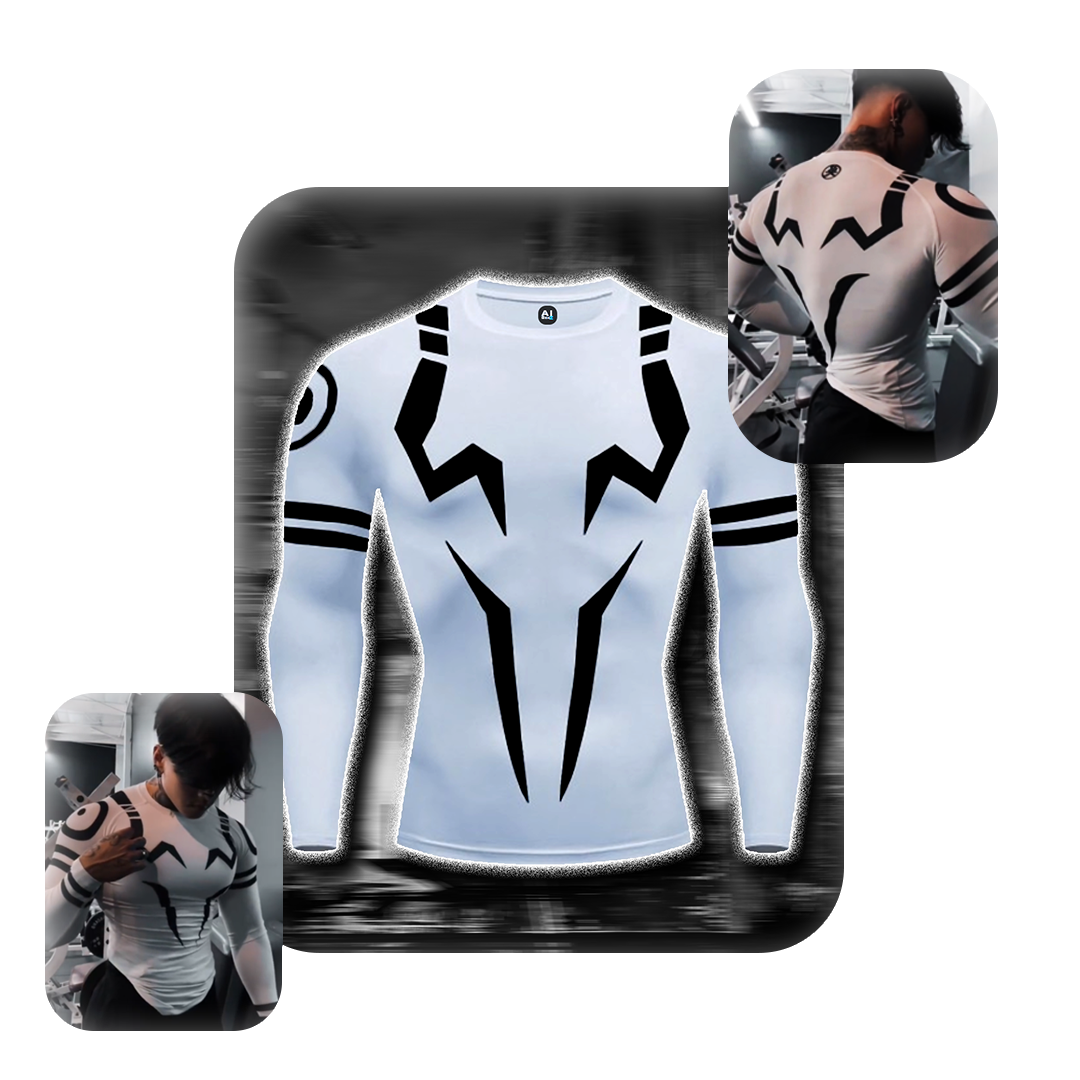 White Printed Compressed Gym Wear - SUKUNA Full Sleeve Tee | AIGenz Sports Wear