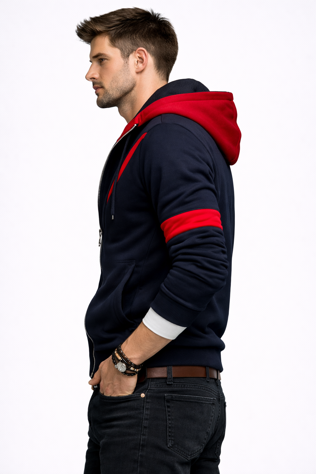 Men slim-fit Zipup hoodie #7 | Red/Black Hoodie for Man Stylish | Extraordinary Look