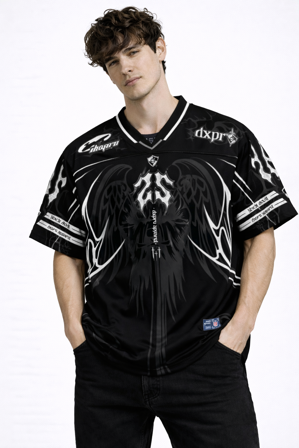 Cyber-Gothic Graphic Jersey | Cyber-Y2K Oversized Tee
